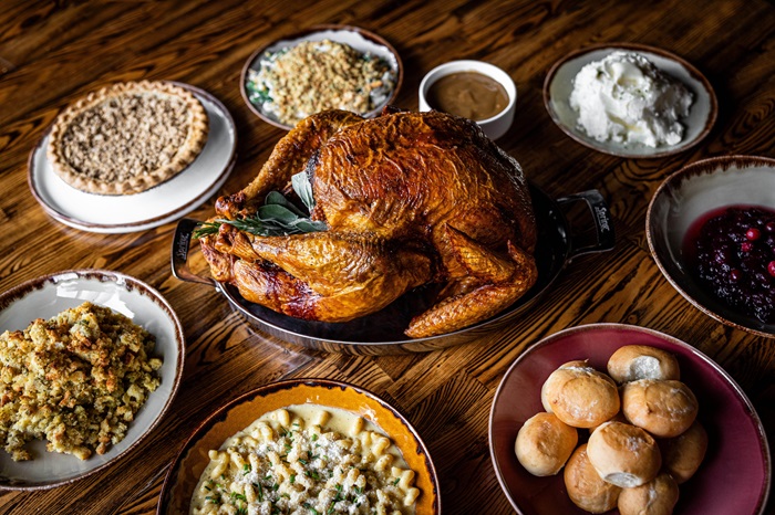 Dine-in features, or enjoy a complete Thanksgiving meal to-go. To-go meal comfortably feeds 8-12 people, $425.