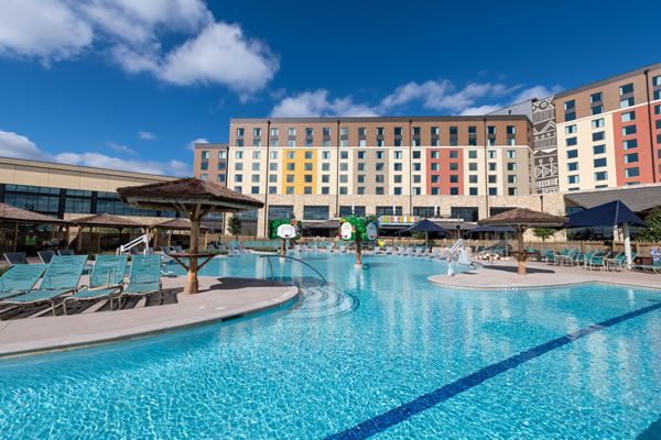 A vibrant indoor resort packed with a variety of activities, including a bowling alley, ropes course, arcade, Build-a-Bear Workshop, mini golf, and much more. The highlight is the heated indoor waterpark, complete with thrilling slides, pools, a lazy river, and a wave pool. When you’re ready for a break from the water, enjoy daily family activities like dance parties and storytimes in the lobby. With a range of dining options and lodge-style accommodations featuring rooms with cozy bunk beds, it's a delightful spot for family fun and relaxation.