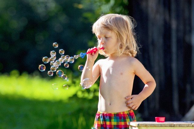 22. Make your own HUGE bubbles. There are some great make-at-home bubble recipes out there! Why not triple the recipe and have your concoction in a baby pool in the yard? Use hula hoops to make gigantic bubbles or old water bottles for something new. You can even tape some straws together for a different type of effect.